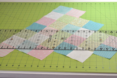 Using a quilt ruler, cut a straight edge along the bottom. {see photo}